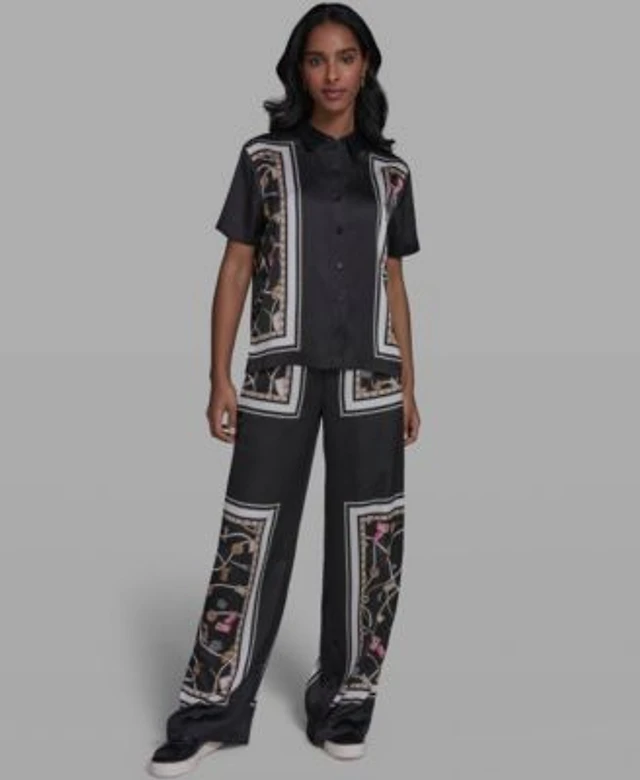 Karl Lagerfeld Paris Womens Collared Short Sleeve Printed Top Pants