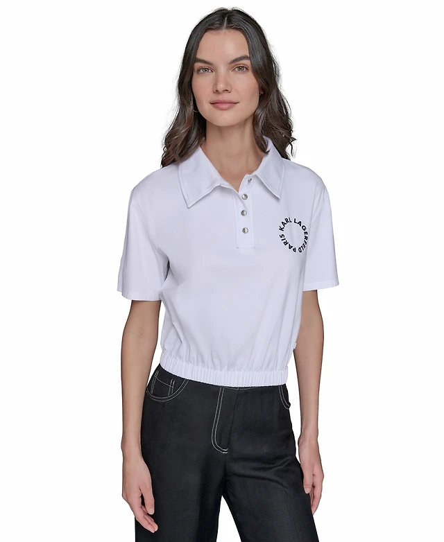 Karl Lagerfeld Paris Women's Cropped Logo Polo