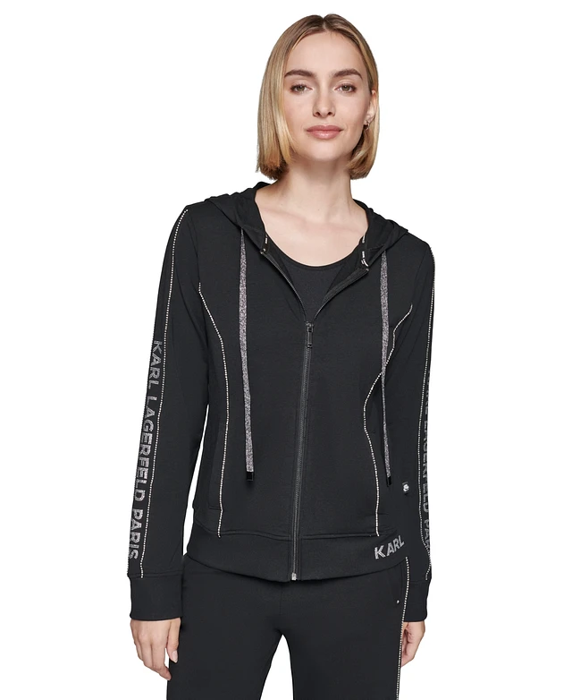 Karl Lagerfeld Paris Women's Embellished Logo Zip Up Hoodie