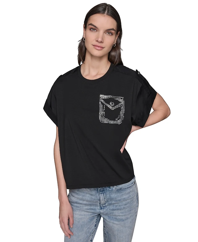 Karl Lagerfeld Paris Women's Embellished-Pocket Tee