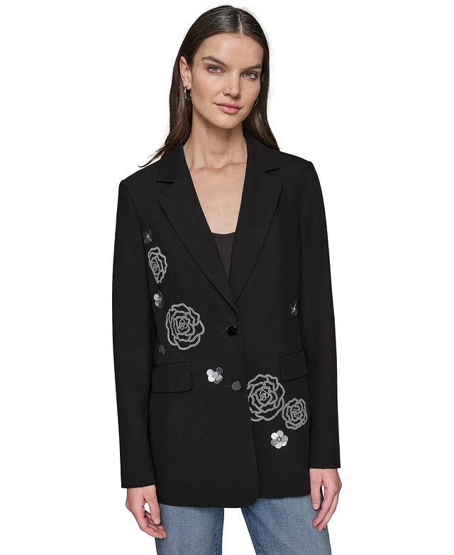 Karl Lagerfeld Paris Women's Embellished Rose Motif Blazer