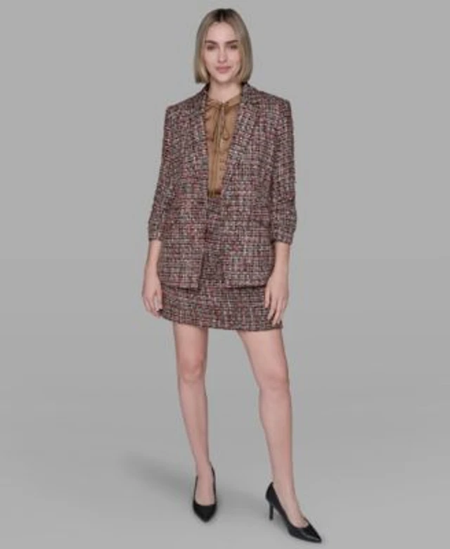 Karl Lagerfeld Paris Womens Five Button Cropped Tweed Jacket Tweed Mini Skirt