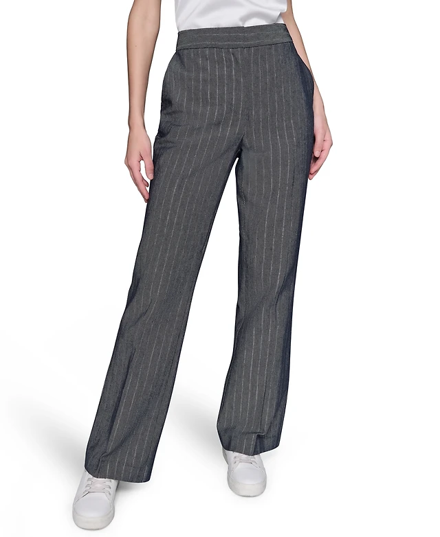 Karl Lagerfeld Paris Women's Pinstriped Flare-Leg Pants