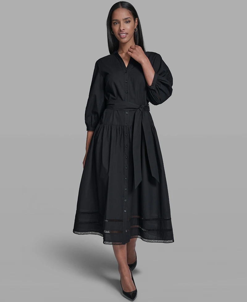 Karl Lagerfeld Paris Women's Poplin Eyelet Button Front Midi Dress