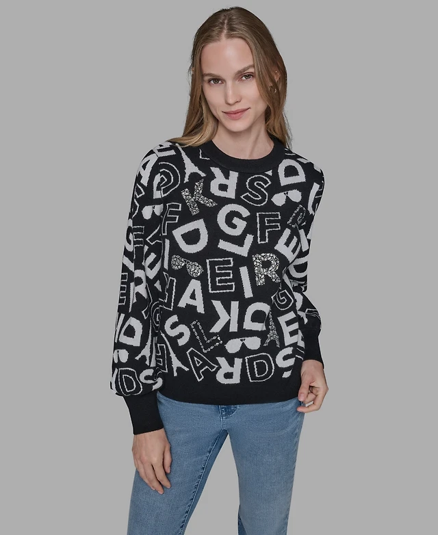Karl Lagerfeld Paris Women's Printed Long Sleeve Sweater