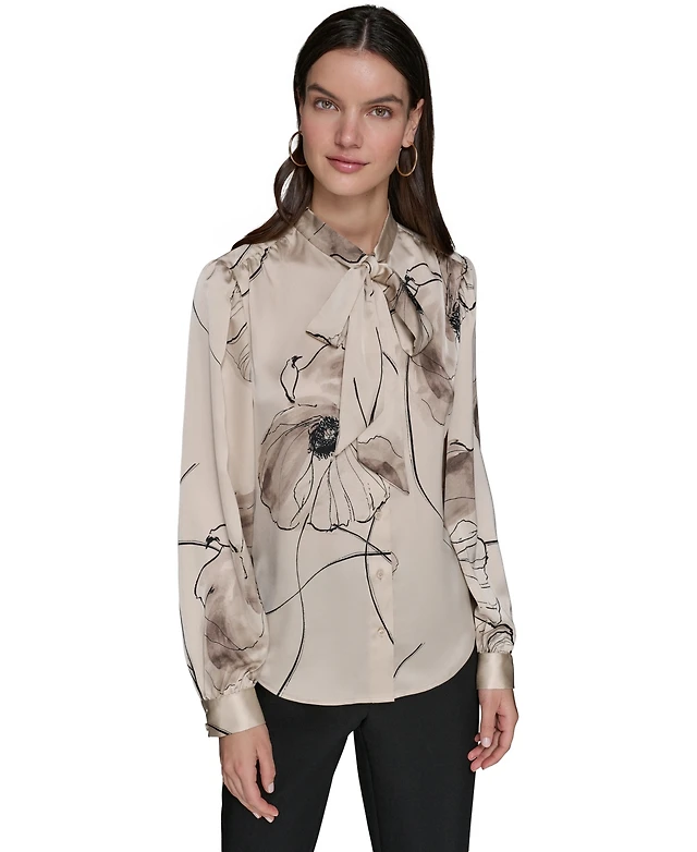 Karl Lagerfeld Paris Women's Printed Satin Tie-Neck Blouse