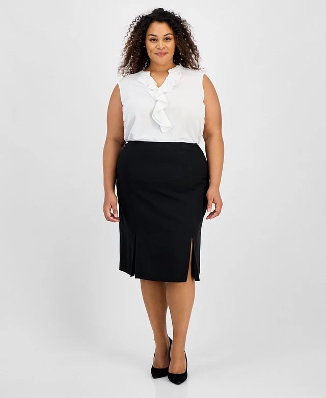 Kasper Plus Back-Slit Pencil Skirt