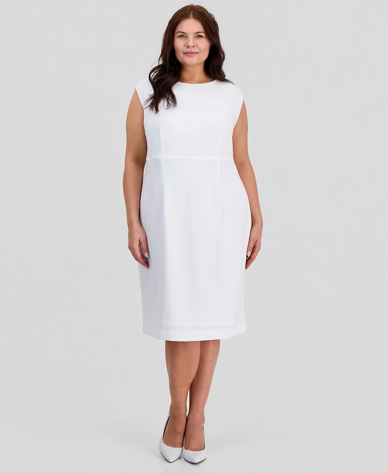 Kasper Plus Stretch-Crepe Cap-Sleeve Sheath Dress