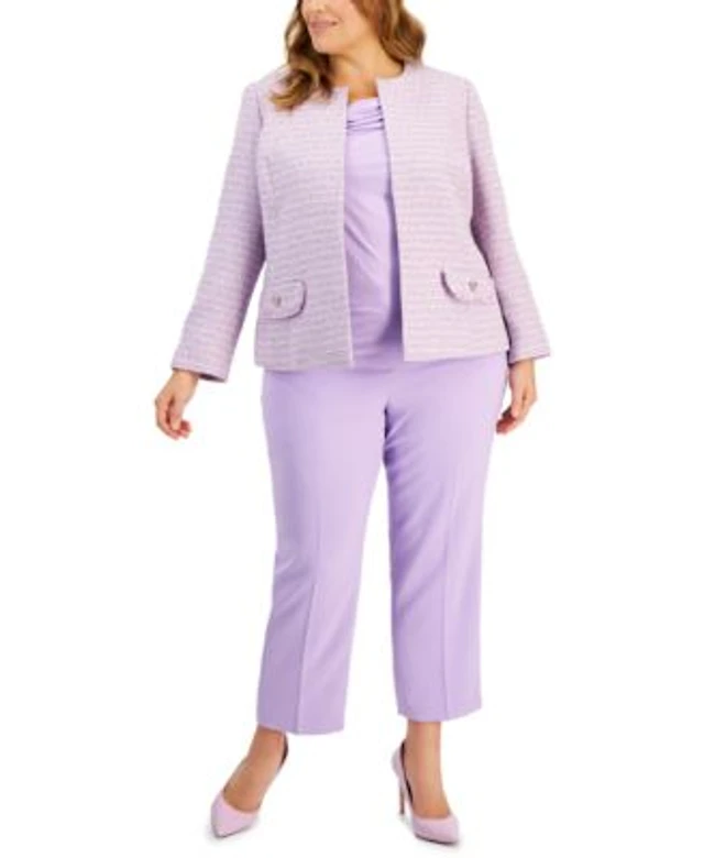 Kasper Plus Tweed Jacket Cowl Neck Top Stretch Crepe Pants