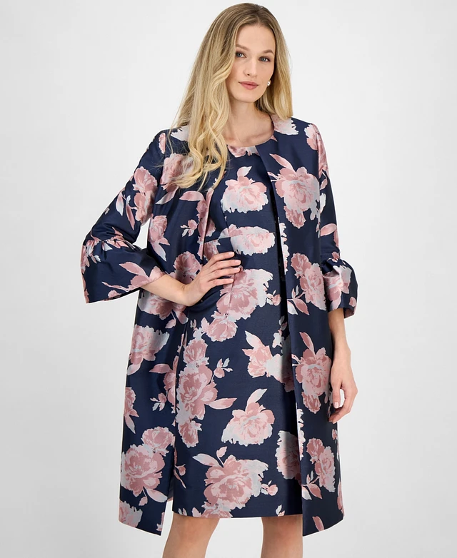 Kasper Floral Jacquard Topper Jacket Sheath Dress