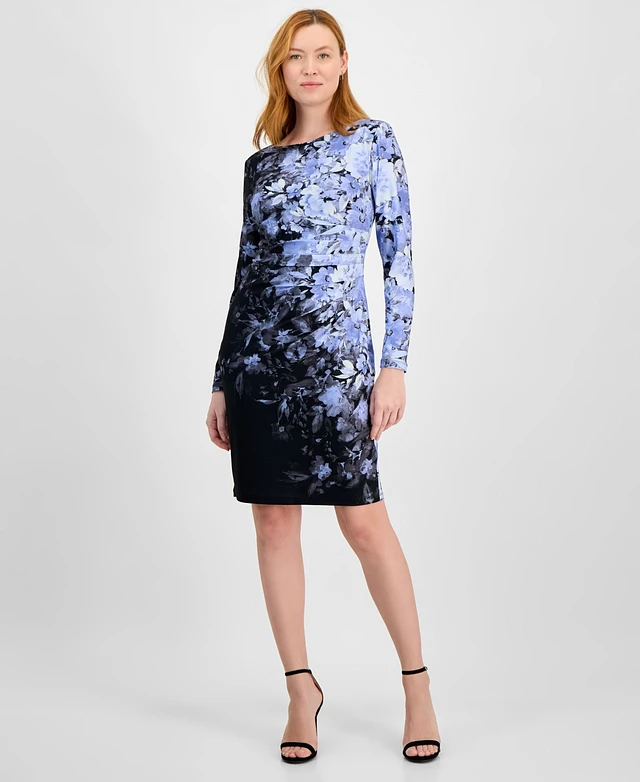 Kasper Women's Long-Sleeve Side-Pleated Knit Dress