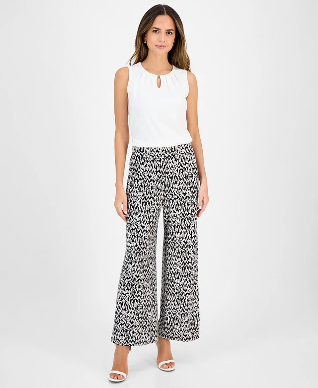 Kasper Women's Printed Wide-Leg Pull-On Pants
