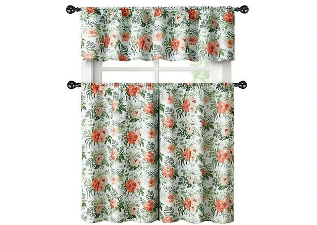 Kate Aurora English Floral Rose Garden Complete 3 Pc CafeKitchen Curtain Tier & Valance Set