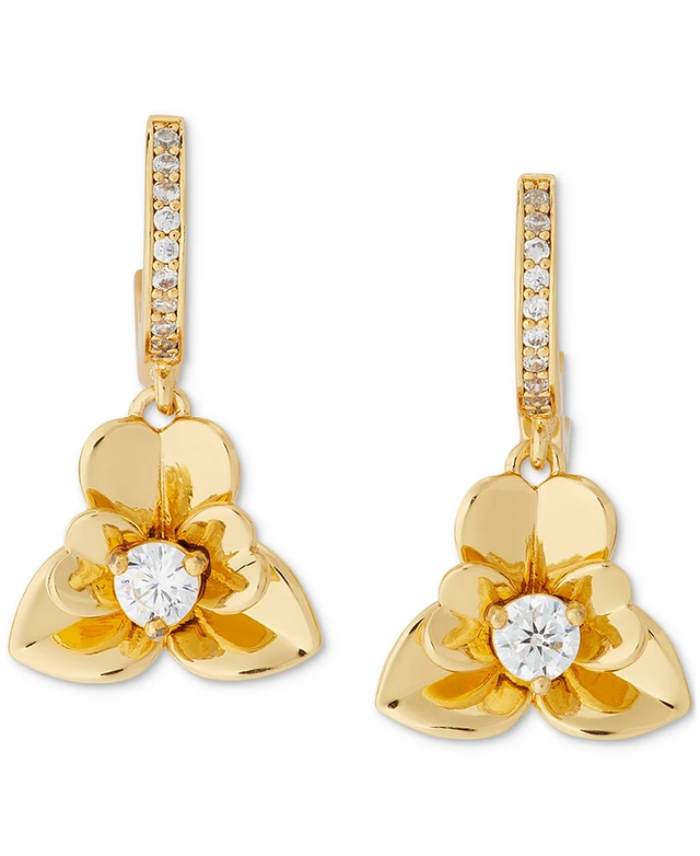 kate spade new york Gold-Tone Precious Pansy Pave Drop Huggie Earrings