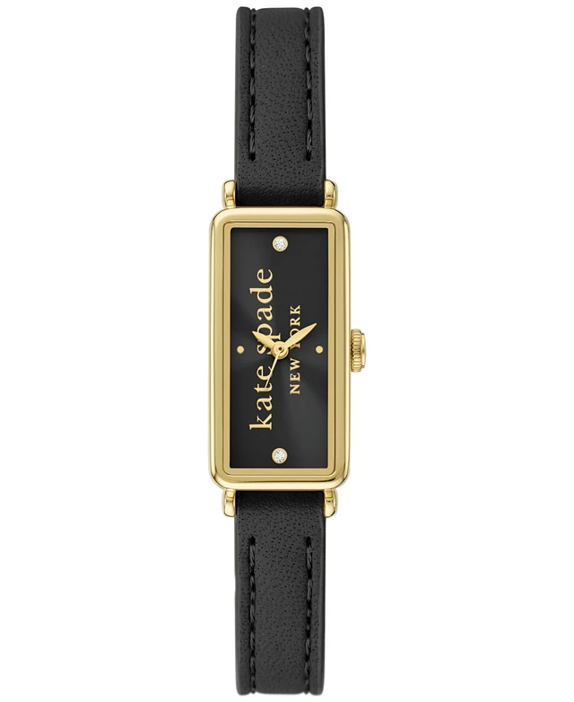 Kate Spade New York Women's Gracie Square Three-Hand Black Leather Watch, 25mm