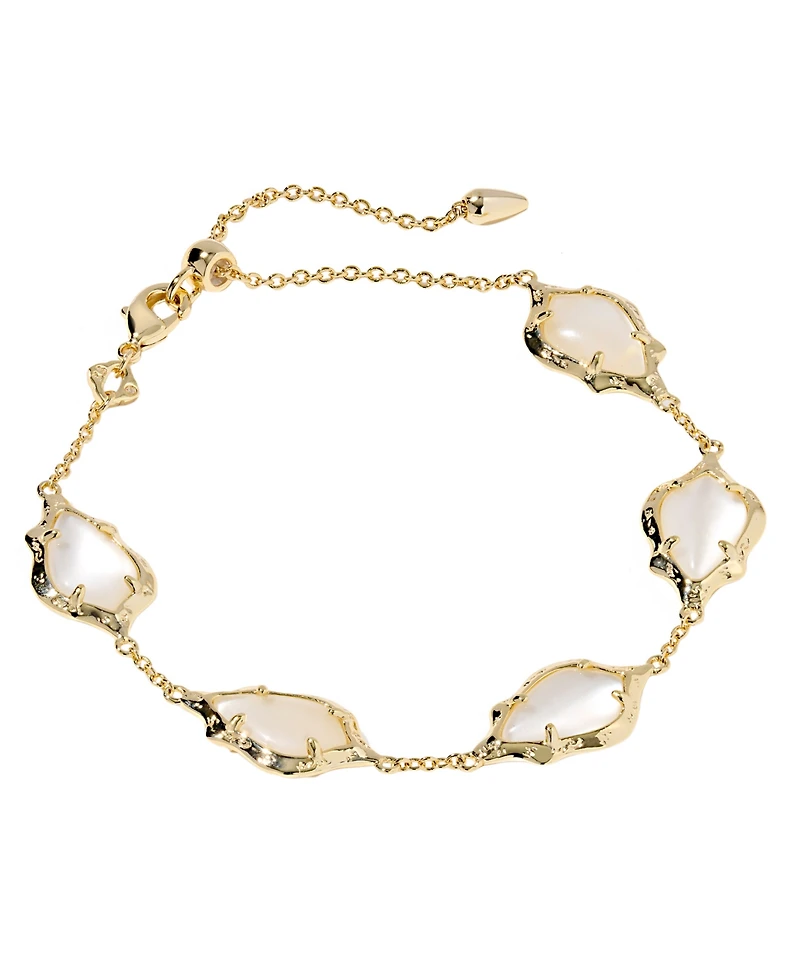 Say hello to elegant sophistication with this Kendra Scott Adriana scallop frame delicate chain bracelet, constructed in gold-tone over brass. Featuring modern teardrop silhouettes with soft scalloped borders inspired by windswept grass, it is full of delicate, nature-inspired details.