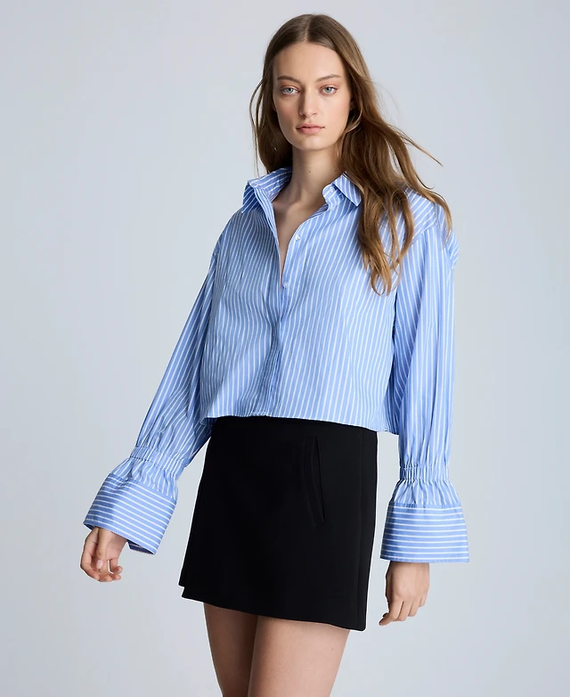 Kenneth Cole Women's Cotton Striped Cropped Shirt