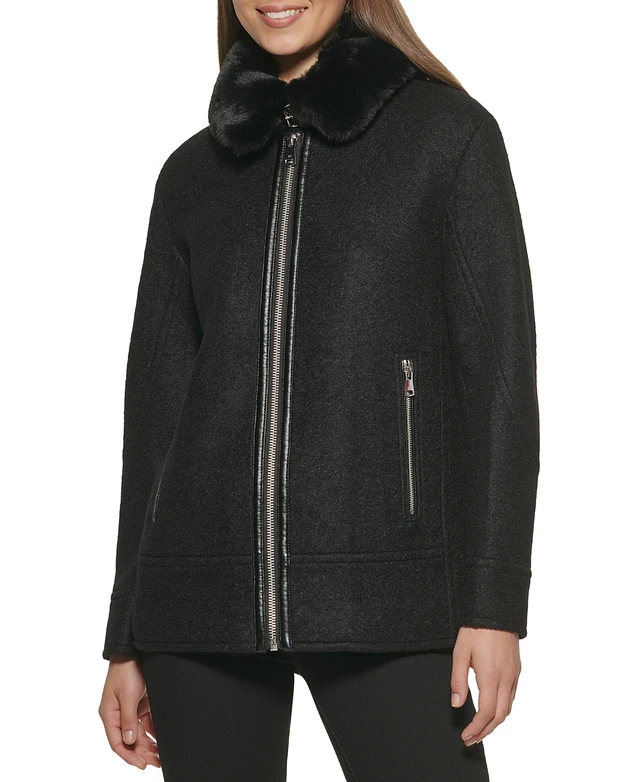 Kenneth Cole Women's Faux-Fur-Collar Moto Coat