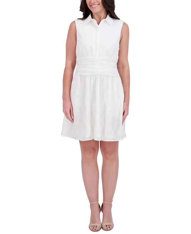 kensie Women's Cotton Embroidered Sleeveless Dress