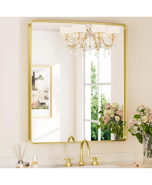Keonjinn 24x36 Inch Brushed Gold Bathroom Vanity Mirror Tempered Glass Metal Framed