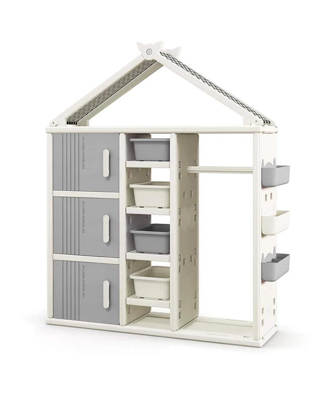 Kids Costume Storage Closet with Storage Bins and Shelves and Side Baskets for Kids Room