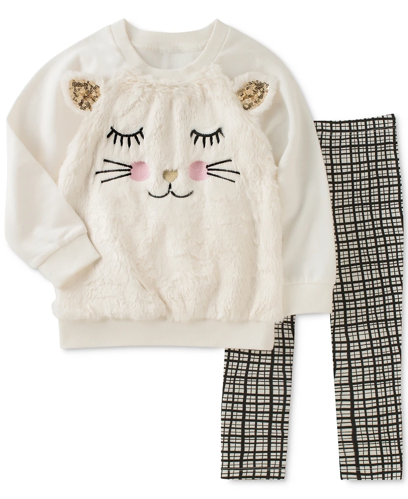 Fuzzy faux fur teams up with adorable appliques on a snuggly sweatshirt in this Kids Headquarters set, which also includes a pair of vibrantly printed leggings.