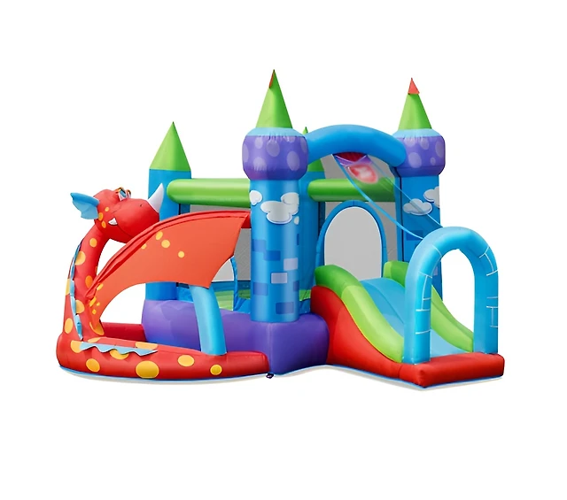 Kids Inflatable Bounce House Dragon Jumping Slide Bouncer Castle Fun Outdoor Playset for Kids
