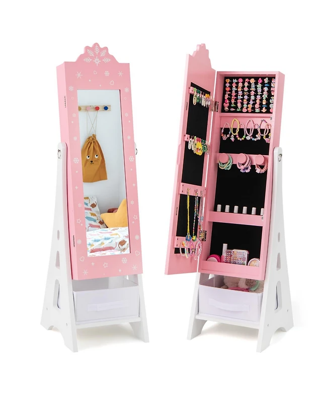 Kids Jewelry Cabinet with Full-Length Mirror for Kids Bedroom and Playroom