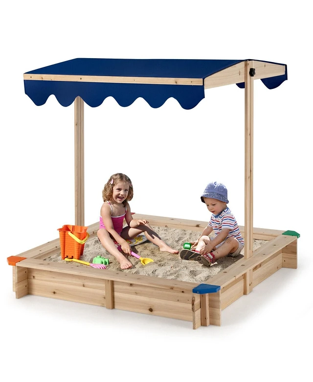 Kids Wooden Sandbox with Height Adjustable and Rotatable Canopy Outdoor Playset