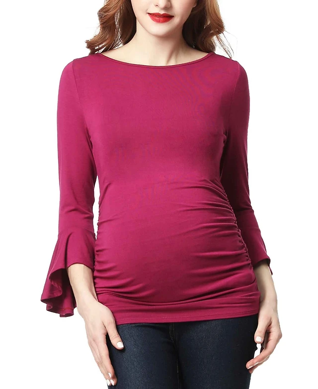 kimi + kai Maternity Lace Shoulder Ruched Top
