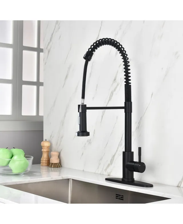 Greenspring Single-Handle Pull-Out Sprayer Kitchen Faucet with Supply Lines Matte Black and Brushed Nickel