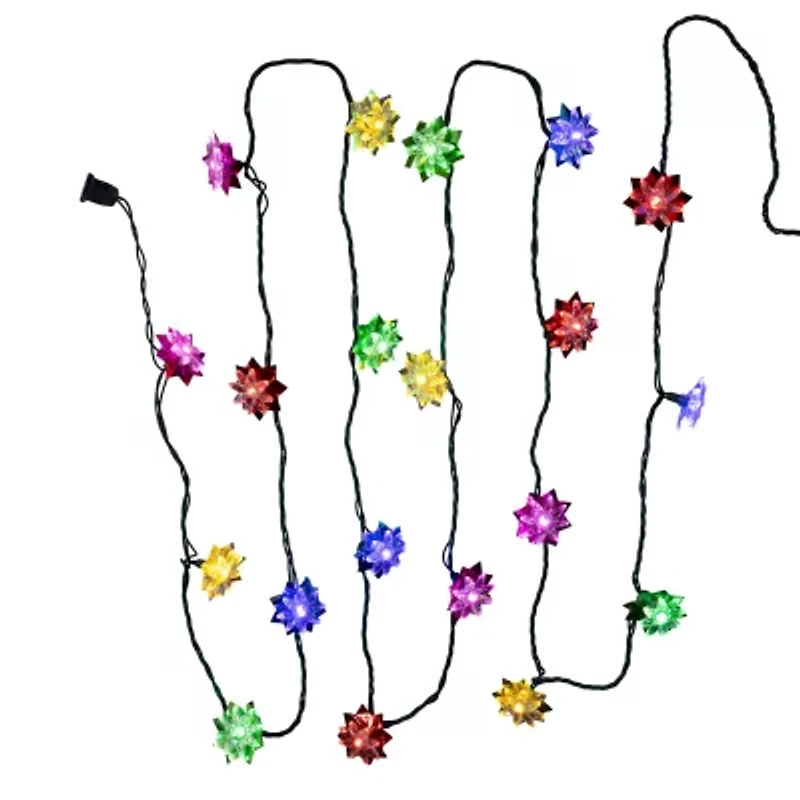 Kurt Adler 15.7' 20-Light Multicolor Led Clear Lotus Flower With Green Wire String Lights
