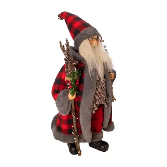 Kurt Adler 12-Inch Standing Christmas Santa with Plaid Shirt, Sack and Lantern
