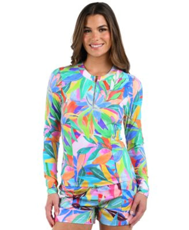 Island Escape Women's Printed-Sleeve Rash Guard, Exclusively at Macy's