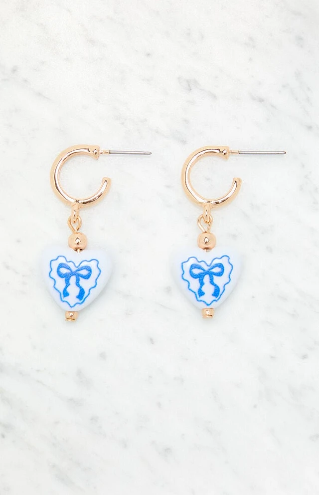 LA Hearts Blue Bow Heart Drop Hoop Earrings