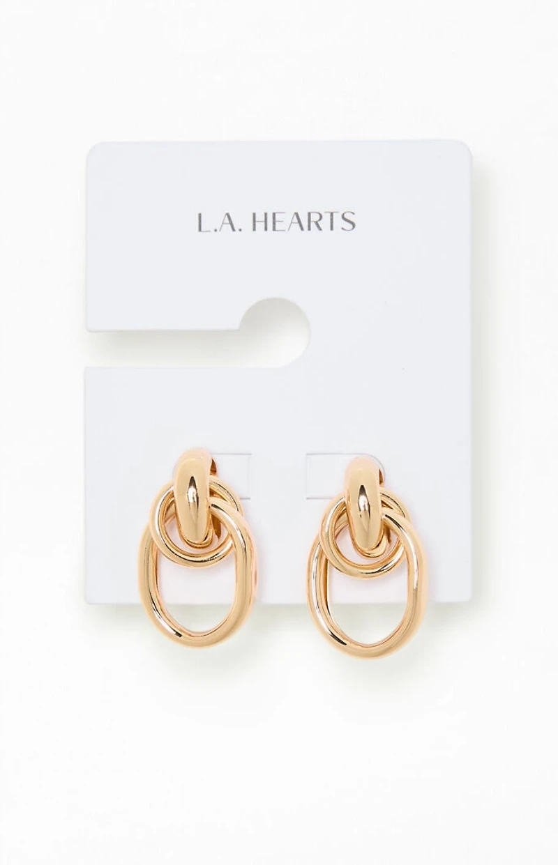 The Oval Post Earrings from LA Hearts add a chic touch to any look. They feature a post back closure, gold finish, and a sleek layered oval design.