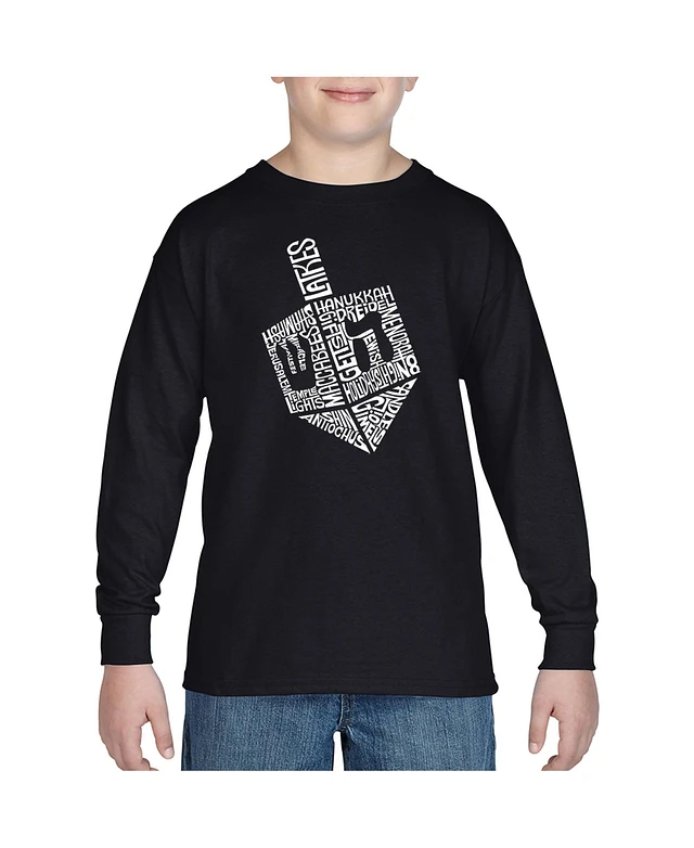 La Pop Art Boys Hanukkah Dreidel Word Long Sleeve T-Shirt