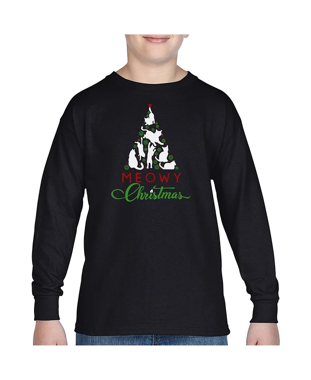 La Pop Art Boys Meowy Christmas Tree Word Long Sleeve T-Shirt