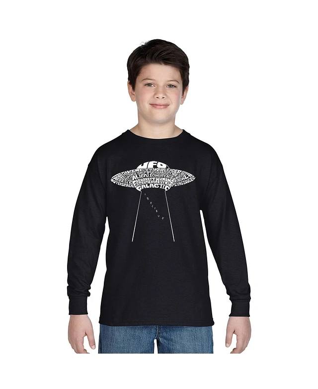 La Pop Art Boys Word Long Sleeve T-shirt - Flying Saucer Ufo