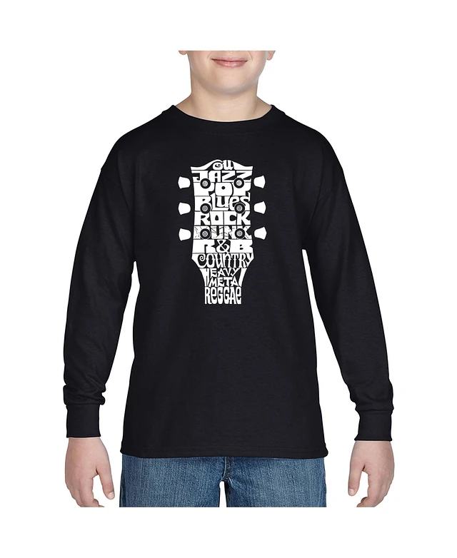 La Pop Art Boys Word Long Sleeve T-shirt - Guitar Head Music Genres