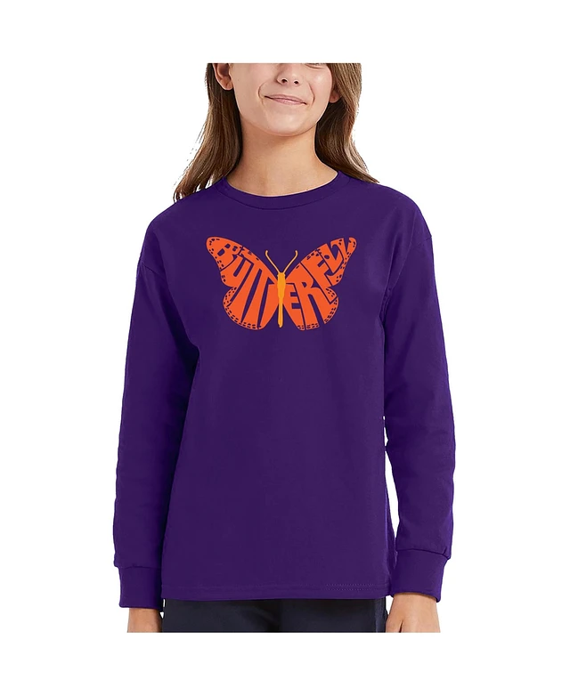 La Pop Art Girls Butterfly Word Long Sleeve T-Shirt