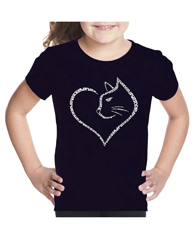 La Pop Art Women's Cat Heart Word Short Sleeve T-shirt