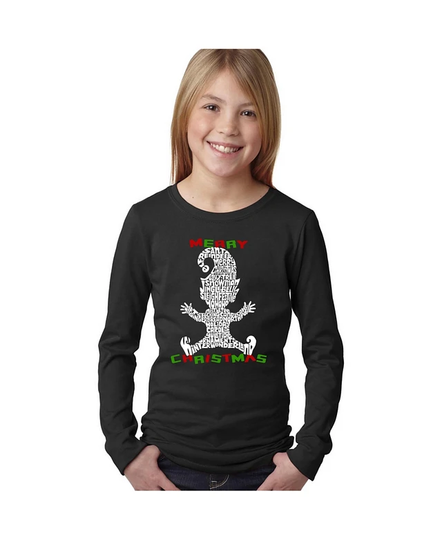 La Pop Art Girls Christmas Elf Word Long Sleeve T-Shirt