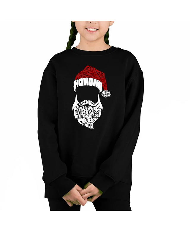 La Pop Art Girls Feliz Navidad Santa Claus Word Crewneck Sweatshirt