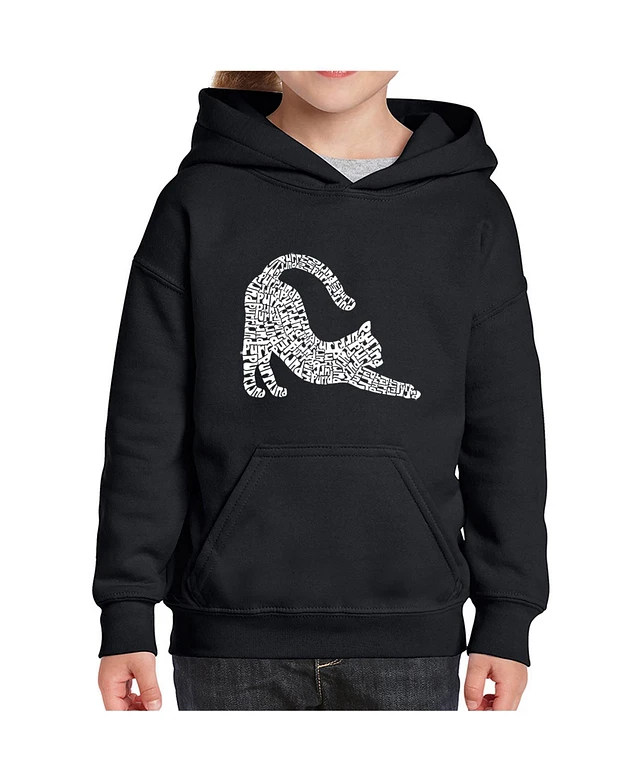 La Pop Art Girls Stretching Cat Word Hooded Sweatshirt