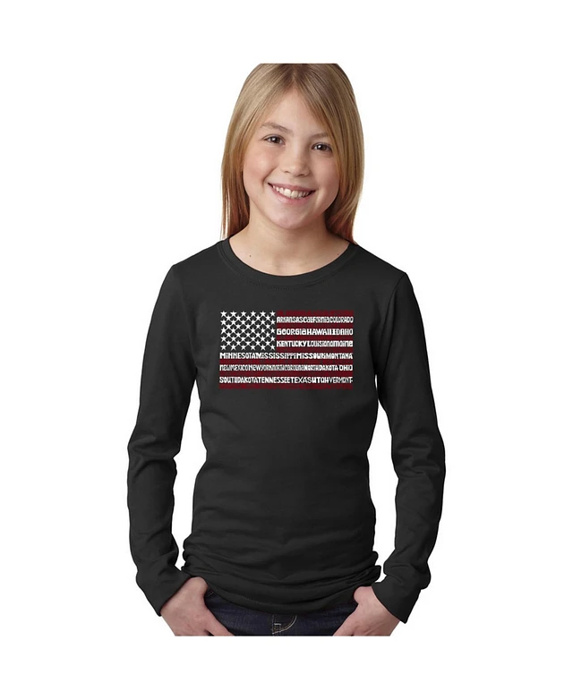 La Pop Art Girls Word Long Sleeve - 50 States Usa Flag T-shirt