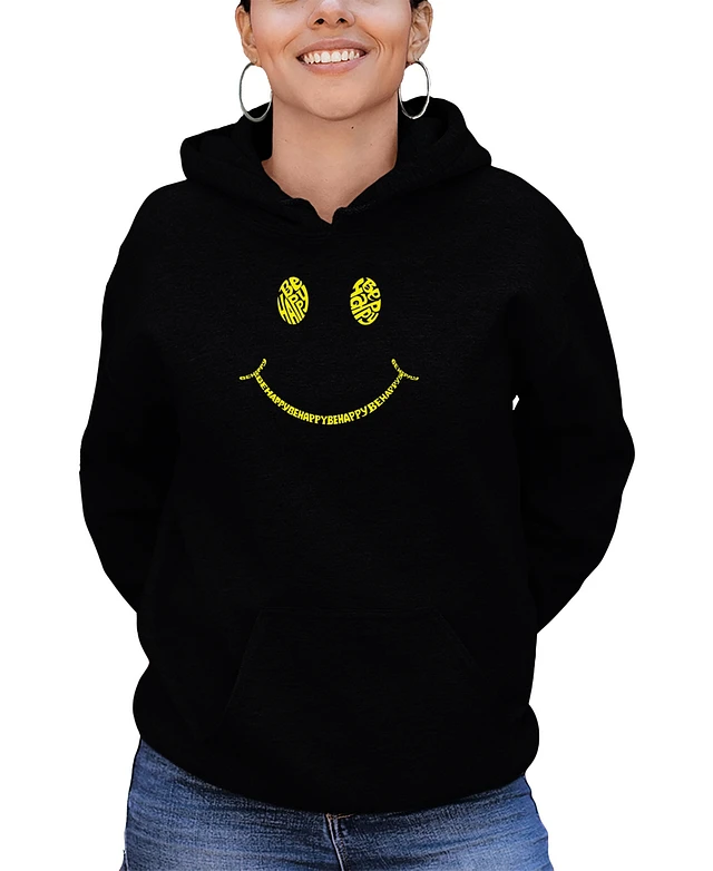 La Pop Art Women's Be Happy Smiley Face Word Hooded Sweatshirt
