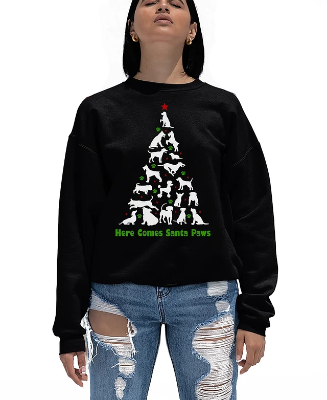 La Pop Art Women's Here Comes Santa Paws Word Crewneck Sweatshirt
