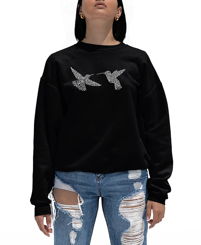 La Pop Art Women's Hummingbirds Word Crewneck Sweatshirt