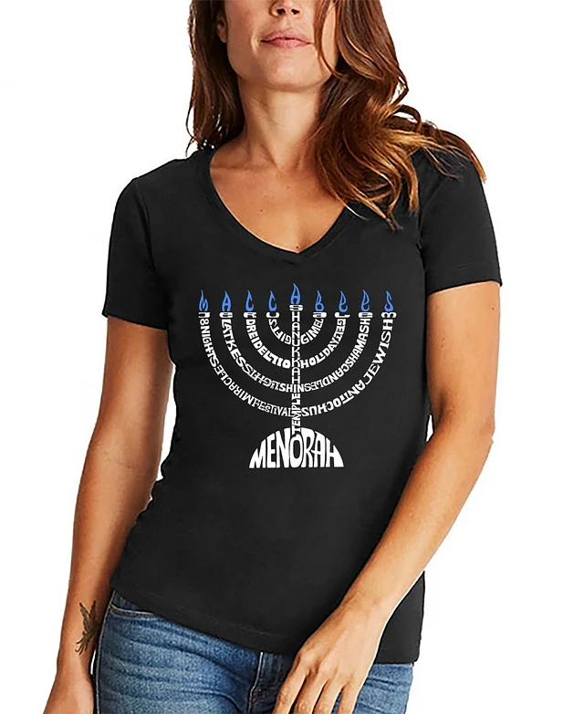 La Pop Art Women's Menorah Word V-Neck T-shirt